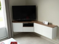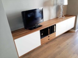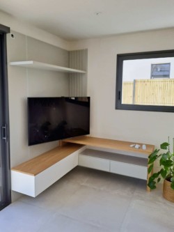 Réalisation de rangements sur-mesure dont tiroirs dans l'estrade.